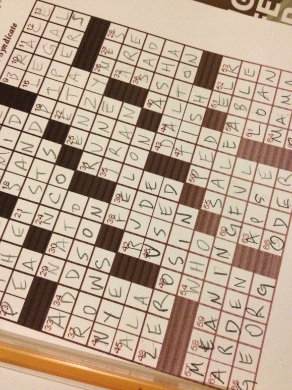 I do my shot every week on Thursday in the evening and usually, after I’m done, I need something to distract myself from thinking too much about the possibility of side effects or how freaky it is that I just gave myself a shot while sitting at the dining room table. This week I decided to challenge the hubs to a crossword competition.