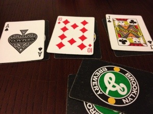 S#!t Head is a card game I’ve played since college. My friends came back from their semester in Ireland and taught everyone this addictive game. We would play for hours on breaks from writing papers, in the middle of parties or just any old time. Some years later, I taught the hubs and our friend John. Both of them are now addicted; I submit as proof the fact that we just spent two hours playing on a Friday night. The rules may sound a little complicated, but once you get the hang of it, it is really quite simple and fun!