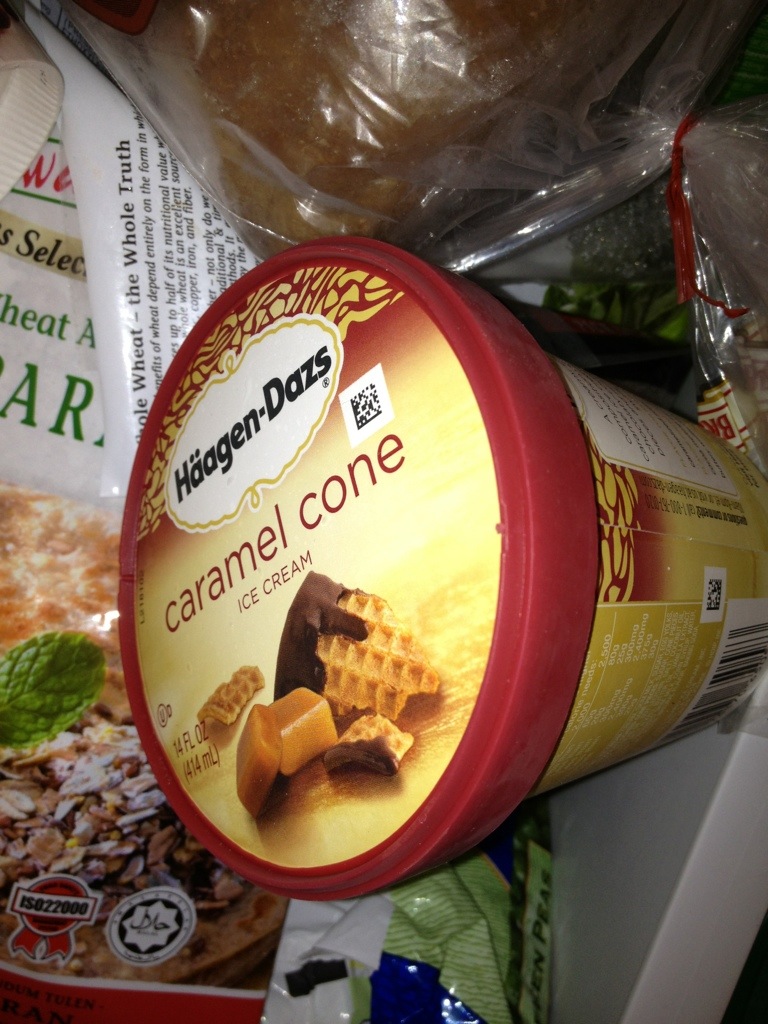 Guilty Pleasure Monday lives on! I may need it less and less because I guess I’m getting used to the methotrexate. It no longer makes me feel so tired or ill throughout the day on Monday. Yet I find I can still use the guilty pleasure pick-me-up and today it’s Caramel Cone ice cream made by Haagen Das.