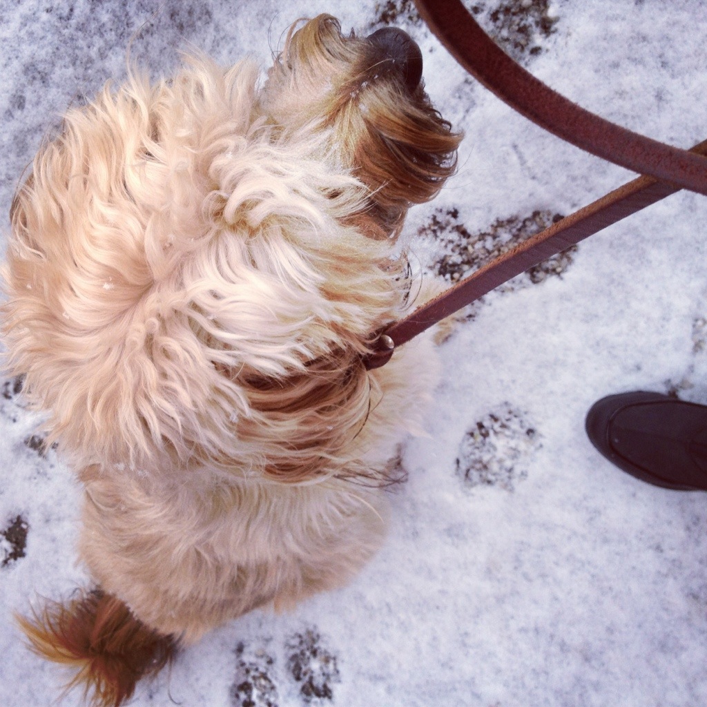 It’s the first real snow day in Chicago! Big, fluffy flakes filling the air, not melting immediately but accumulating on the ground. Elphie and I went out to play in it, as best we could as human and dog in an urban environment.