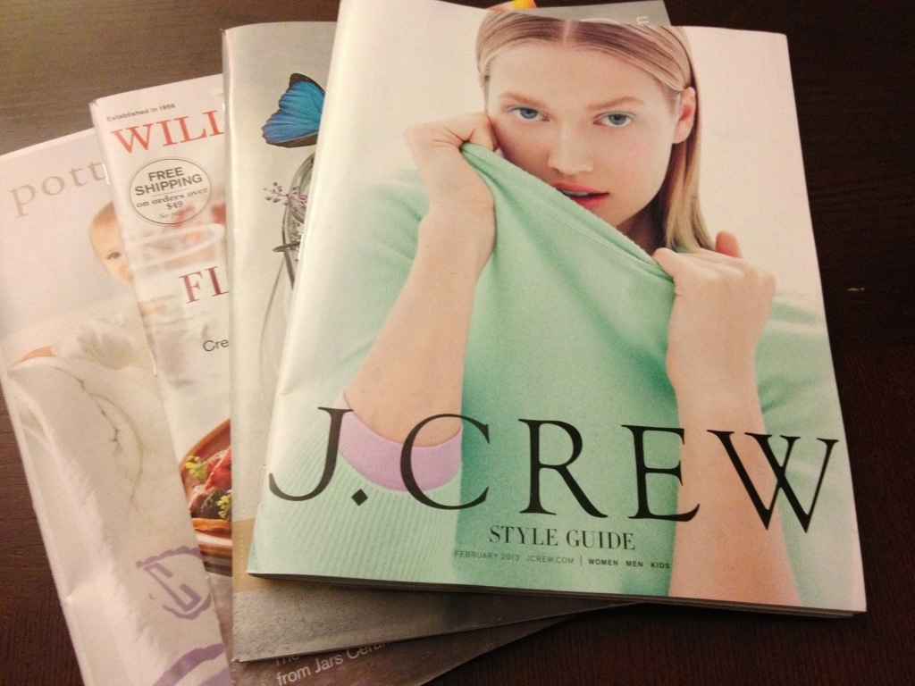 Today I got four CATALOGS in the mail: William Sonoma, Pottery Barn Kids, West Elm and J. Crew. Normally, these would lay in a pile on the coffee table until getting recycled during a cleaning fit. This evening, I actually sat and leisurely paged through them all. (And, to those keeping track–probably only the hubs–it is not the same as my post about looking for a new magazine because these are catalogs).